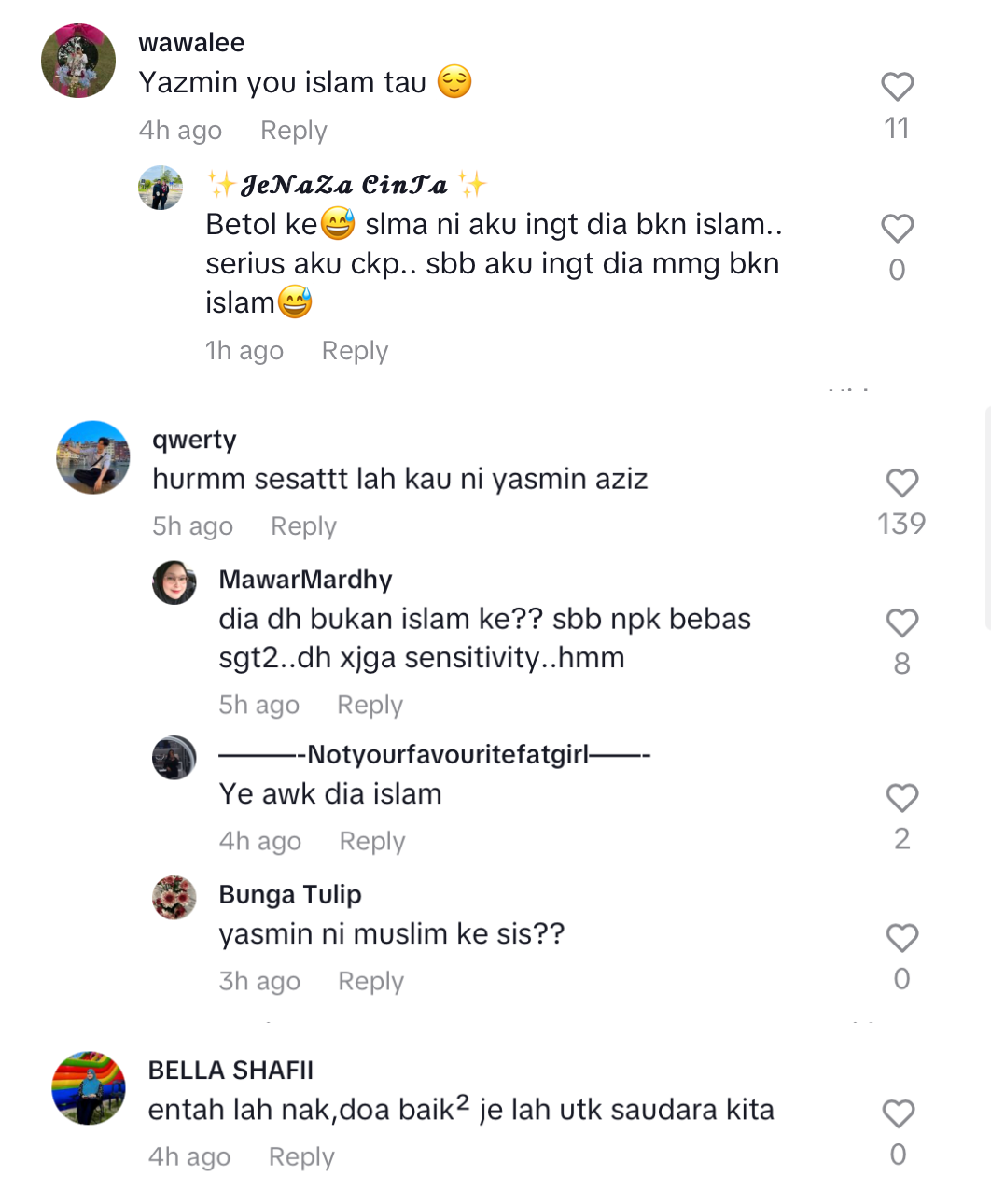 Seperti sudah dijangka, diruangan komen rata-rata netizen meluahkan rasa terkejut melihat video berkenaan apatah lagi Yasmin merupakan beragama Islam.